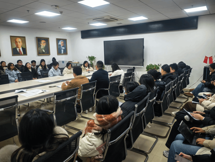 李胜蓝详细解读了2026本科生毕业论文工作计划,从选题申报、开题报告、中期检查到论文撰写及答辩等环节的时间节点进行梳理,并强调各阶段需注意的关键事项。陈军从提高人才培养质量、强化本科毕业论文过程管理的重要意义出发,系统讲解了论文撰写的总体要求和技术规范,提醒全体学生高度重视毕业论文写作的育人功能,并从提升毕业论文规范性、严谨性创新性等方面提出了建议。曹阳针对论文选题方向与思政学科特色结合分享了论文写作经验引导学生关注社会热点问题,实现理论与实践的深度融合。武彦斌强调了毕业论文过程中的纪律要求学生严格遵守各项时间安排,按时完成开题报告、答辩等各阶段任务,保持与指导教师的积极沟通,以严谨态度和扎实学风高质量完成毕业论文。何晓龙强调了毕业论文的各项时间安排,并为学生们介绍了论文管理系统运用情况。