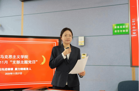 为深入学习贯彻党的二十届四中全会精神,强化党员责任担当,推进铸魂育人工作落地见效,11月27日下午,bbin连环夺宝官网11月主题党日活动在东区C106举行。学院党委副书记武彦斌、学院团委书记姚晟及全体在校学生党员参与其中。活动由党建办学习宣传部李奕晓主持。