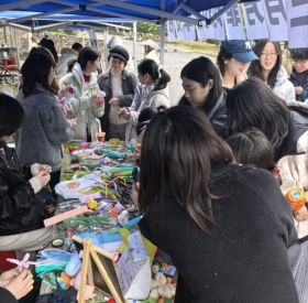 另一边,“手作花·赠芳华”环节同样人气满满,在校大学生、家长带领的小朋友们纷纷驻足摊位,亲手制作专属手作花。大家跟随志愿者的指导,将皱纹纸、扭扭棒、丝带等简单材料,精心制作成一朵朵饱含心意的花束。“我想再多做几朵,送给我妈妈,她一定会很开心的。”一位小女孩的童言稚语,让现场暖意更浓。指尖凝香,温情相伴,大家在动手创作中感受美好,在心意传递中致敬芳华。