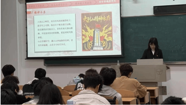 随后,团队成员围绕“笃行不怠别山志,青春接力续荣光”开展大别山精神特色主题宣讲,胡越尧以“革命沃土孕精神”为引入,介绍了大别山独特的地理区位和重要的战略地位,通过“播放一个视频、讲述一个故事、阐明一个道理”为主线,讲述了大别山区红二十五军政委吴焕先的革命故事,透过他短暂却炽热的28年人生,以小见大生动诠释了烽火中的大别山精神在今天依旧具有鲜活的生命力。