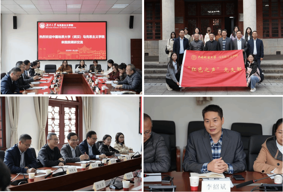 (通讯:侯玲玲、姚晟,摄影:蒋秋香)为深入贯彻落实党的二十届四中全会精神,切实推动我院党建工作提质增效,深化校际交流互鉴,11月13-14日,我院“红色之声”党支部师生代表赴中南大学、湖南大学和长沙红色教育基地开展党建交流研学活动。学院党委书记魏海勇、党委副书记武彦斌、思想政治教育系副主任何晓龙、团委书记姚晟老师出席,研会骨干、党建办骨干等10名研究生同学参与,旨在通过实地调研、深度对话与红色寻访等形式沉浸式学习感知红色文化与中华优秀传统文化,引领师生强化党性修养,为支部建设与“红色之声”社团发展注入新动能。