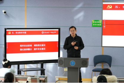 武彦斌开展安全教育和案例警示。他结合学校发布的安全警示案例,从网络色情诱导骗局、刷单返利骗局、非正规软件链接骗局等方面进行警示教育;同时,他强调党员要当好自身安全“第一责任人”,重点提醒大家警惕流感传播风险、规范用电用水行为,在日常生活学习中做安全管理的先行者和示范者。