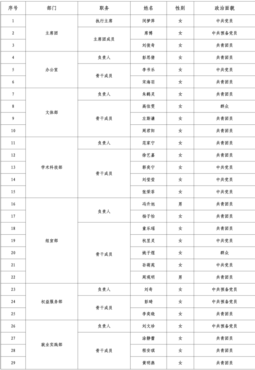 根据我院学生工作需要,经过学生个人申请,结合材料审核、遴选答辩、研究生会主席团充分讨论,报学院团委研究审定,现评选出2025-2026届研究生会各部门工作人员。具体名单公示如下: