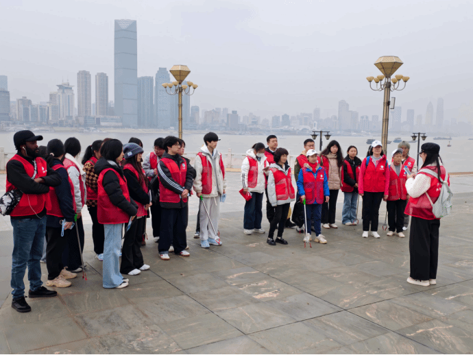 2026 年 3 月 19 日,恰逢长江大保护战略实施十周年,我院联合武汉生态环境志愿服务总队、学校环境学院、国际教育学院钢铁侠志愿服务队、武汉市武昌区碧水蓝天环保协会、爱在江滩阳光志愿服务队一分队及四分队、武汉民间河湖长、江北社区关爱新就业群体志愿服务队等多家单位,在武昌江滩共同举办 “守护长江 培根铸魂” 净滩志愿服务活动。校地携手、多方联动、中外同心,广大志愿者以实际行动践行生态文明理念,为长江大保护注入青春动能,推动思政课堂走出校园、走进江畔,在实践中落实立德树人根本任务。